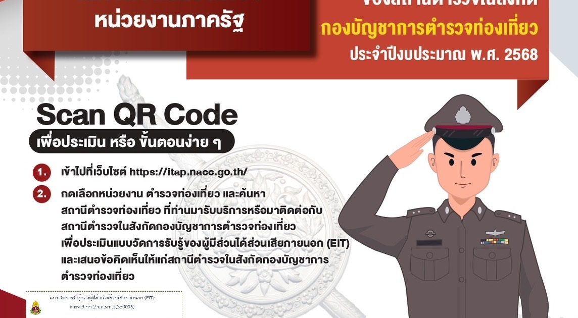 📢“ขอเชิญชวน”📢ผู้มารับบริการ / มาติดต่อสถานีตำรวจท่องเที่ยวสระแก้ว ร่วมประเมินคุณธรรมและความโปร่งใสในการดำเนินงานของหน่วยงานภาครัฐ